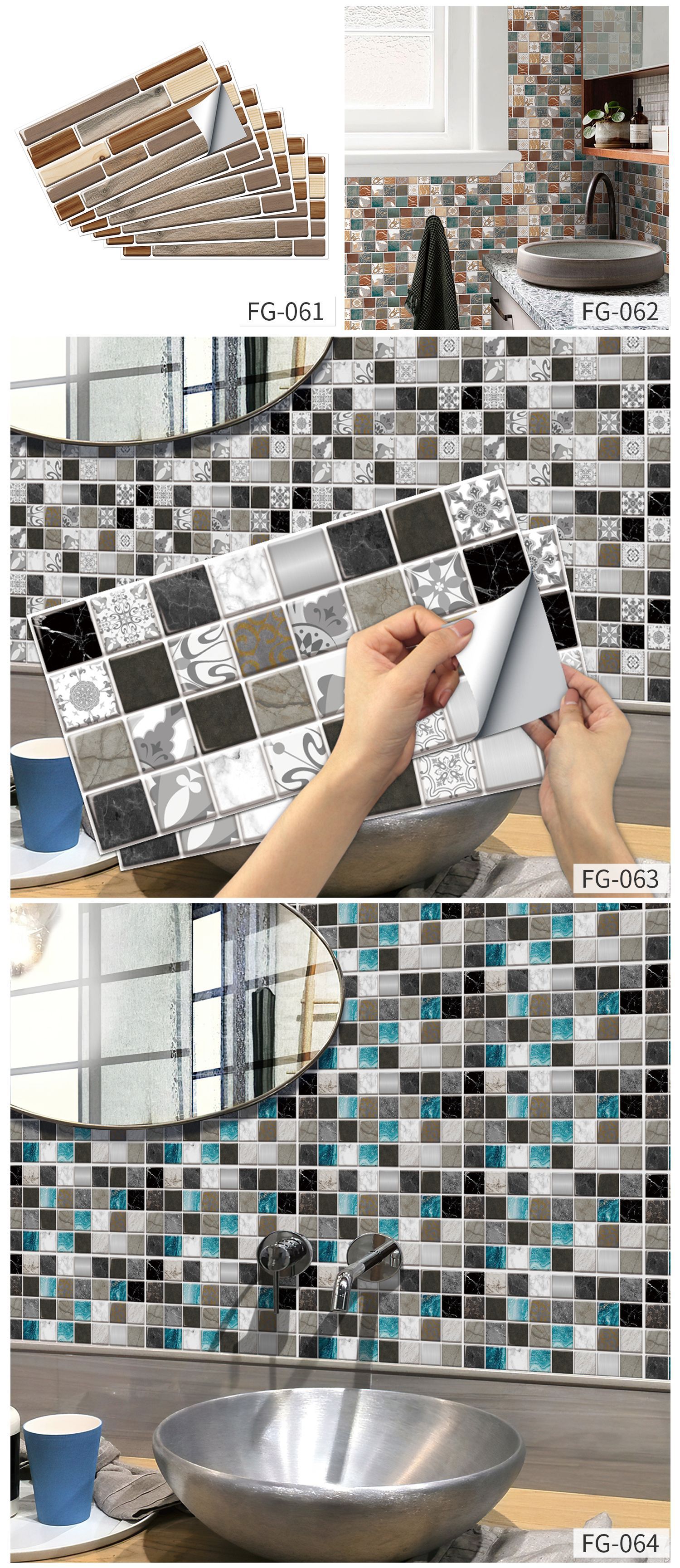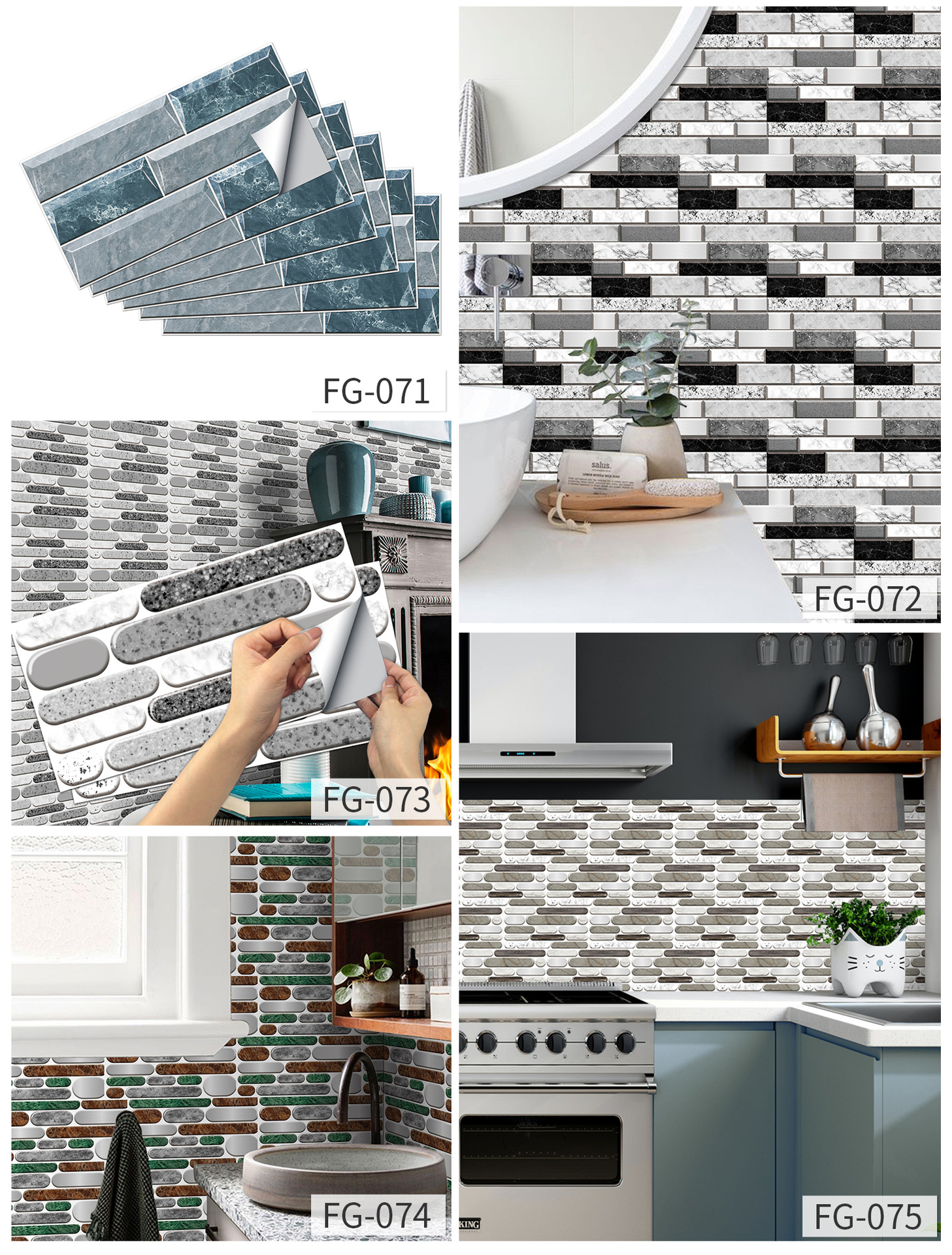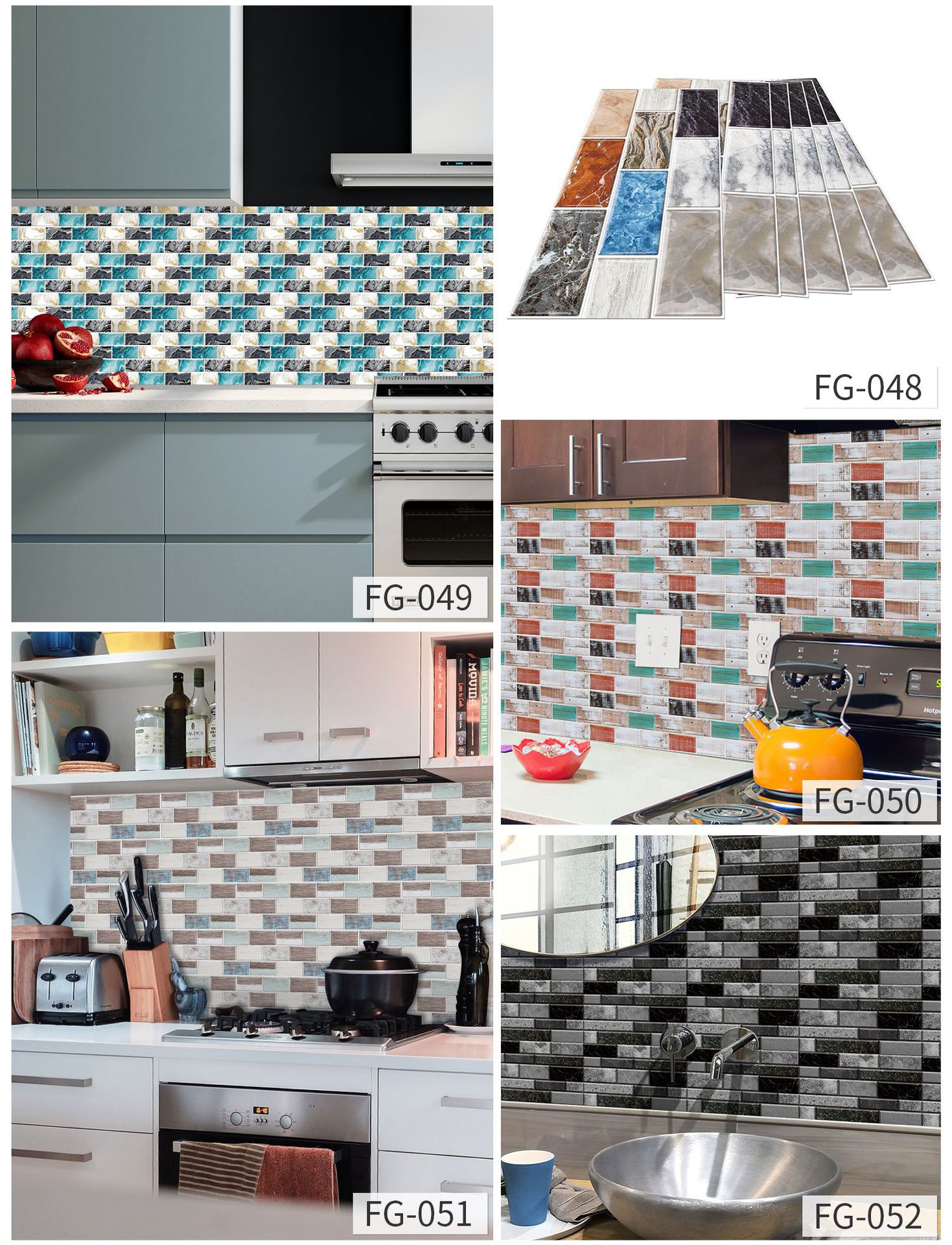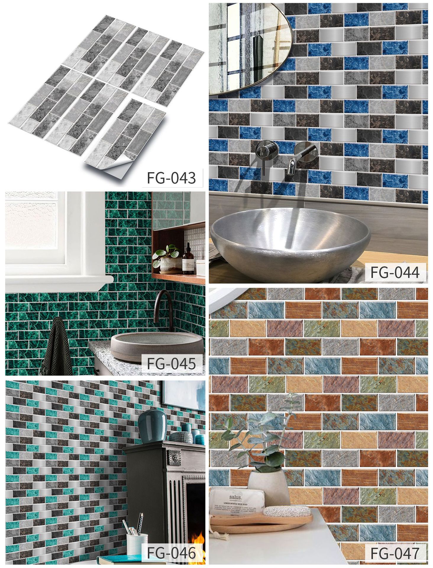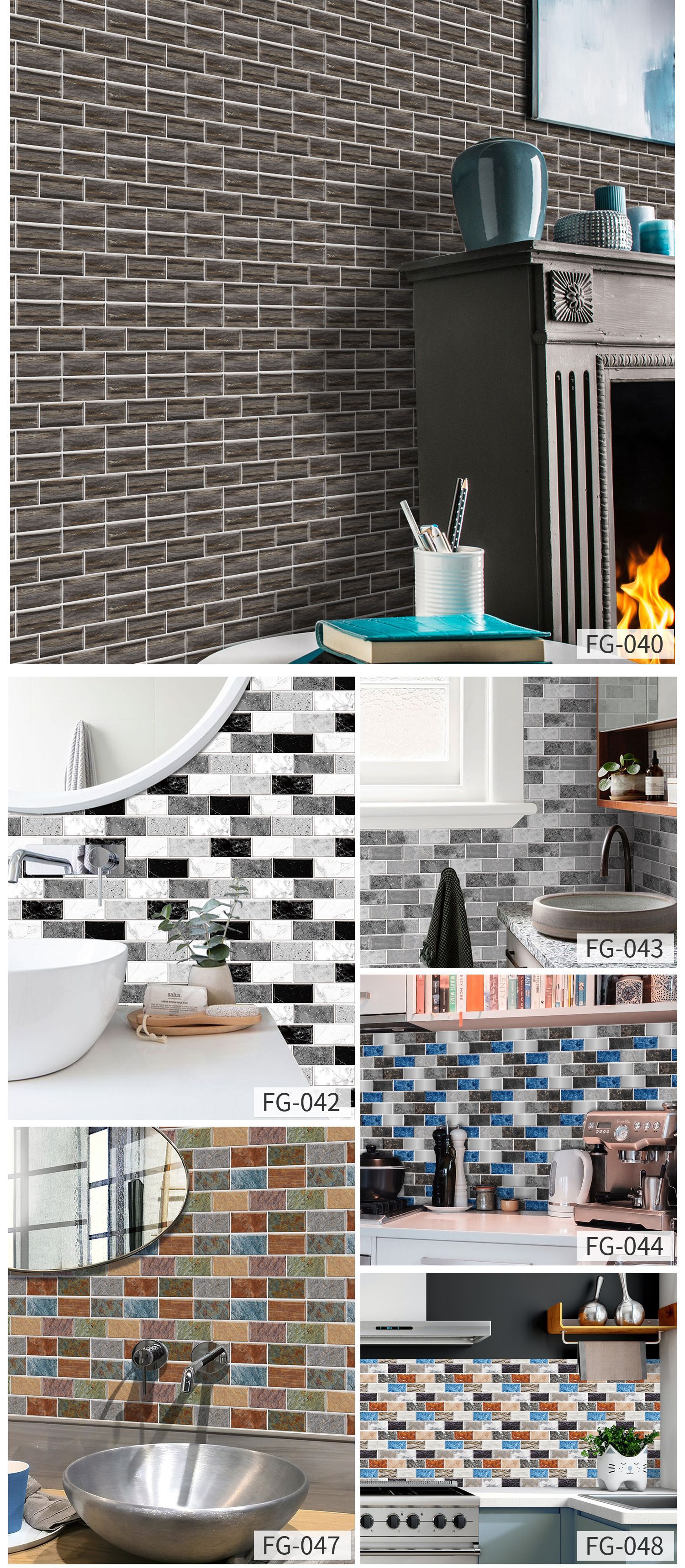 European-style Retro Wall Stickers Kitchen Greaseproof Stickers Self-adhesive Wall Decorative Creative Brick Pattern Tile Sticker Waterproof Removable